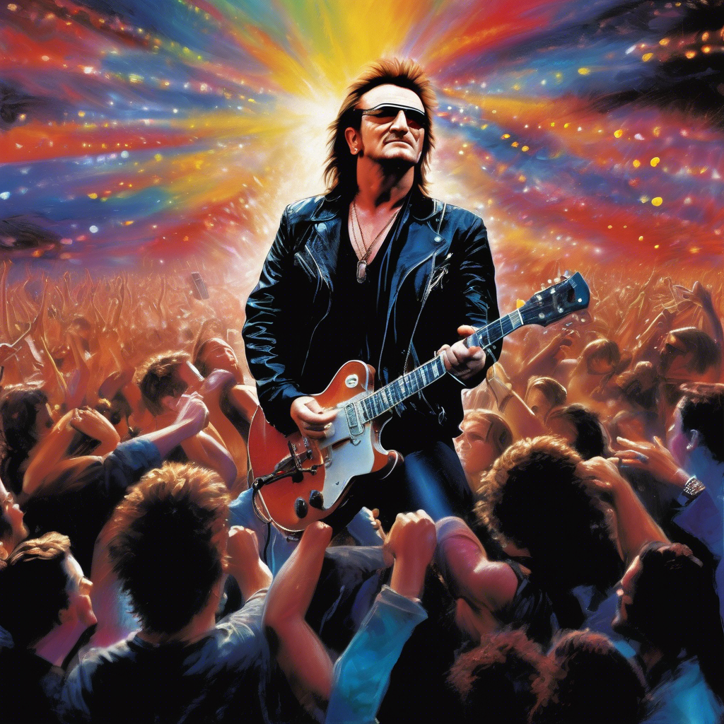 Era 1980 y un bullicioso escenario en Nueva York alcanzaba su cúspide. De repente, la puerta se abrió y un grupo de adolescentes irlandeses, U2, entraron con un fuego deslumbrante en los ojos. Bono, vestido con una chaqueta de cuero, se acercó al micrófono y, antes de cantar, lanzó una provocadora declaración sobre la lucha de su país, apremiando a la audiencia a sentir cada palabra. El concierto se tornó en un momento de comunión, donde la música se entrelazaba con el activismo social, mientras las guitarras resonaban y el público estallaba en euforia.